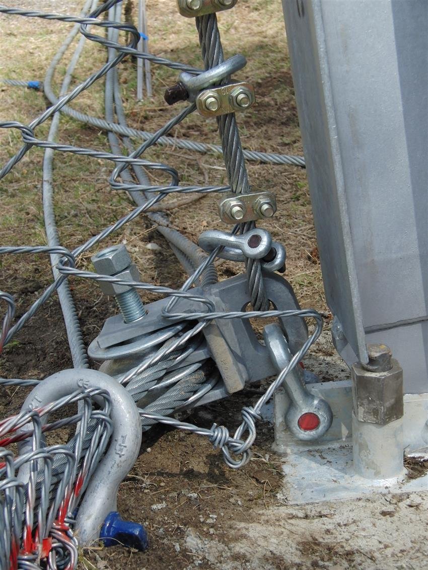 Direkler dikildikten sonra, iki sabitleme çubuğu yardımıyla kayaya veya temellere bağlanırlar.
